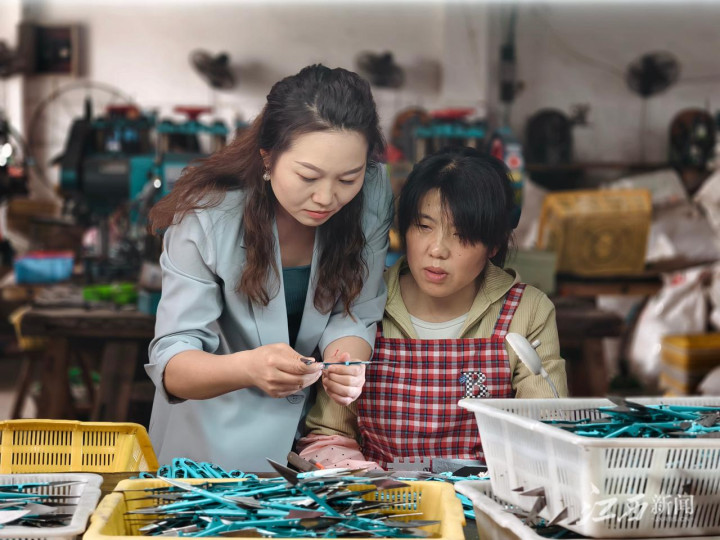 剪具厂设在乡镇,给当地留守妇女提供了许多就业机会。“目前,厂里有50多名员工,其中80%是女性。除锻打、焊接等特殊岗位外,其他工序优先招聘女性员工。”程欢给员工培训技术,现在每名员工都能胜任2至3个岗位,月均工资在5000元左右。这种家门口就业模式解决了留守妇女的生计问题,还让她们获得了更多发展机会。